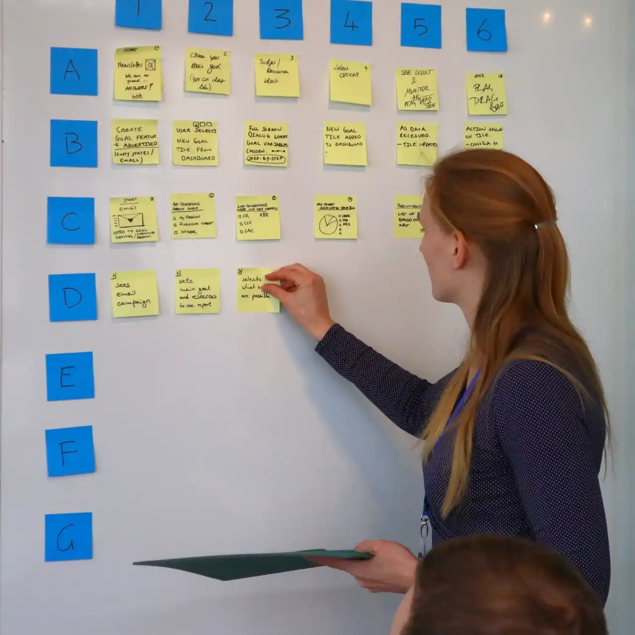 Onze begeleider(s) helpen je team om de beste ideeën te kiezen en ze te vertalen naar concrete acties. We hebben een keur aan tools voor het verwerken van grote hoeveelheden ideeën in korte tijd.